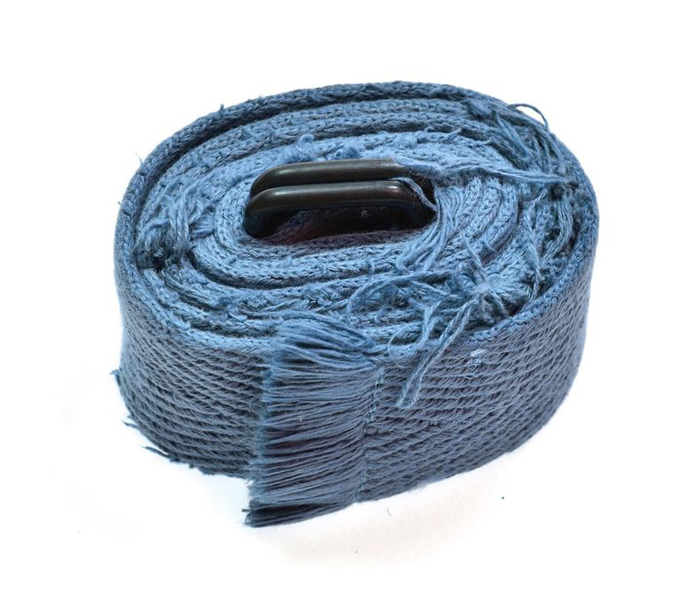 Стильный текстильный ремень, декорированный полоской и фирменным логотипом. Застежка на металлическую пряжку. Отличный вариант на каждый день.